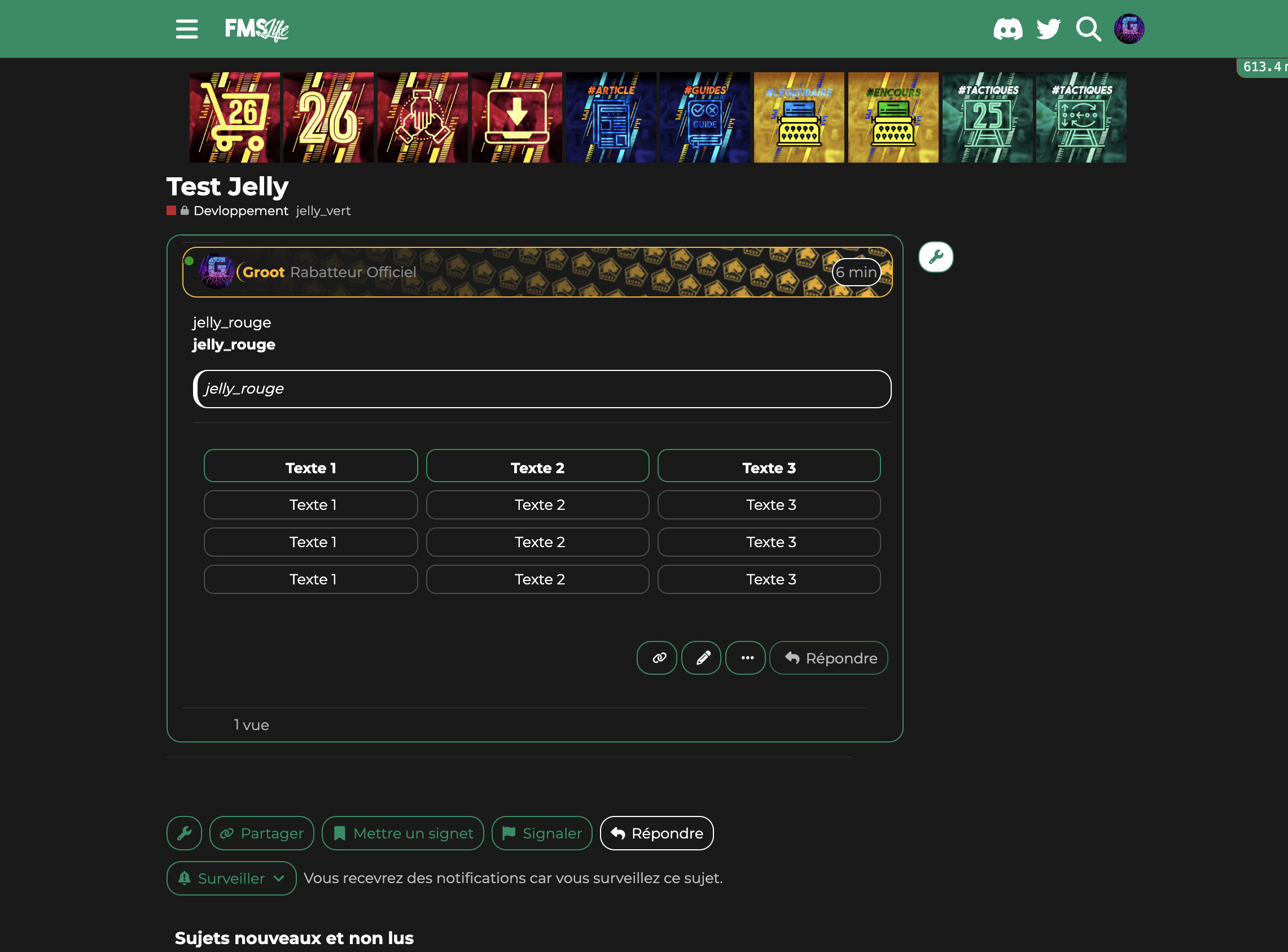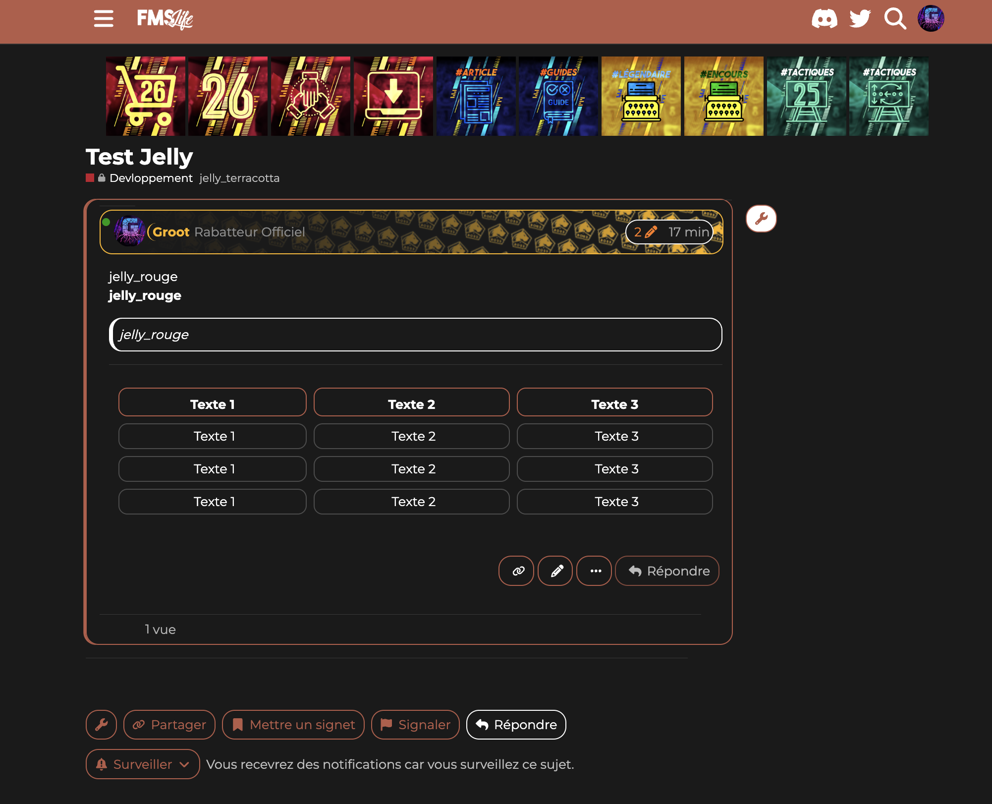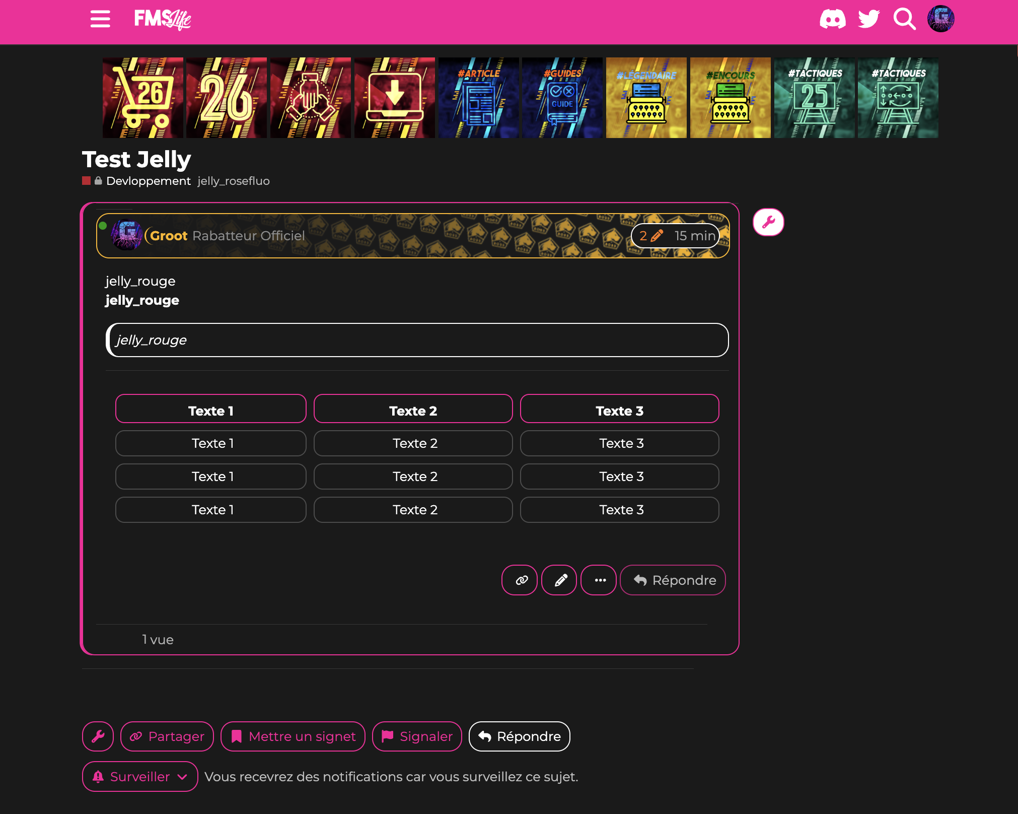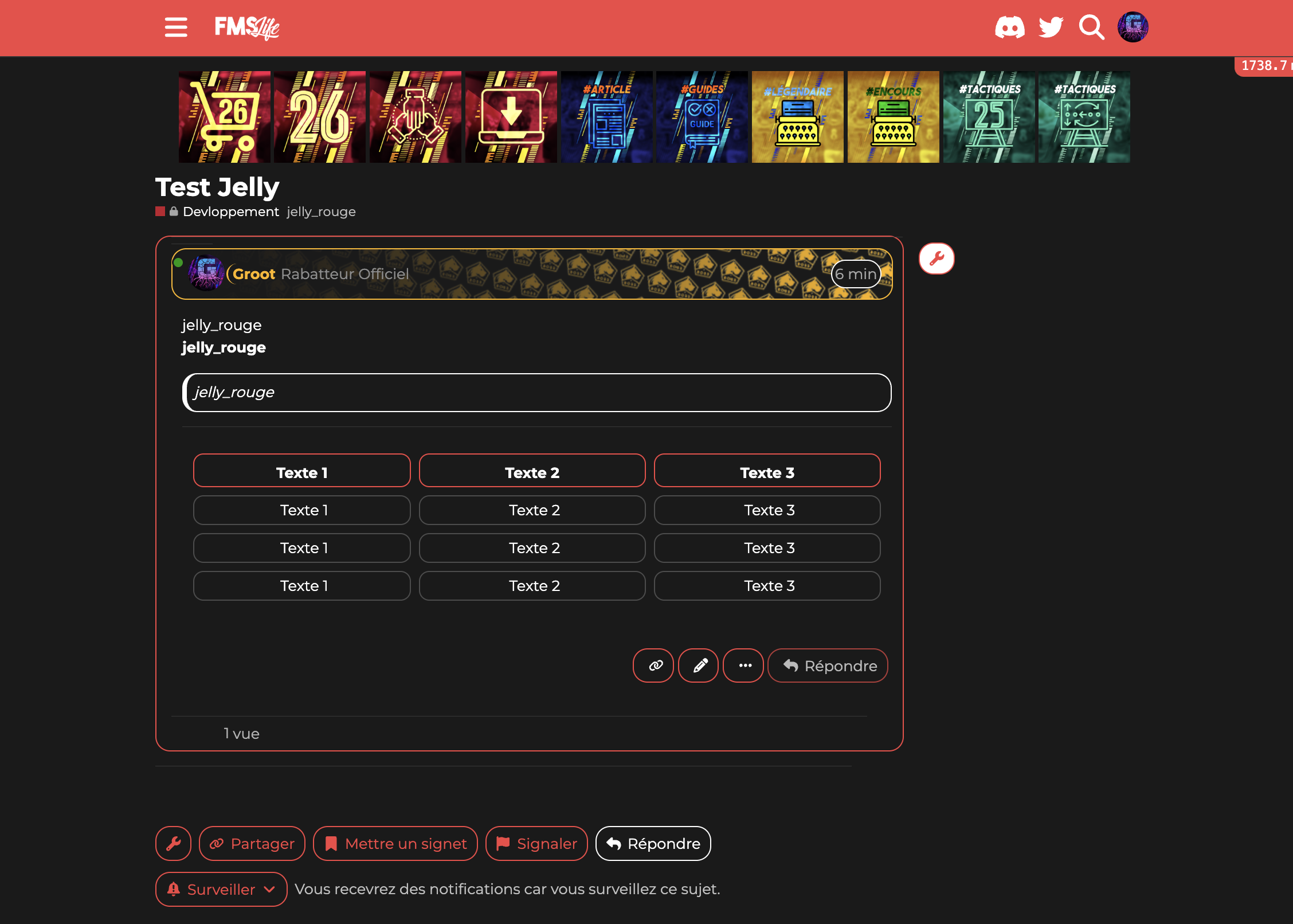 Comme vous le savez pour les sujets vous pouvez ajouter des tags. J’ai inauguré un nouveau groupe de tags les jelly tags ![]()