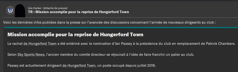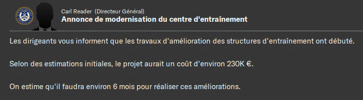 Notre réputation s’est légèrement améliorée et cela pourrait nous permettre d’attirer des joueurs un peu plus huppés même si nous devrions nous contenter de joueur de basses divisions ou laissés libres.