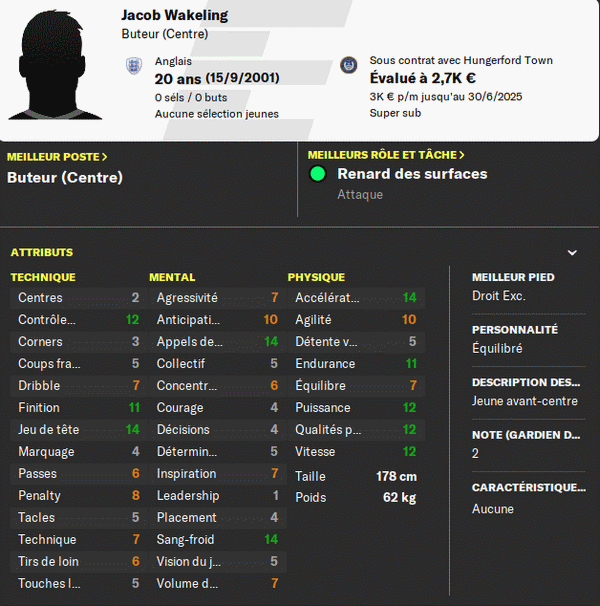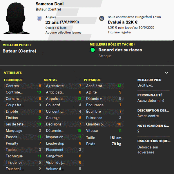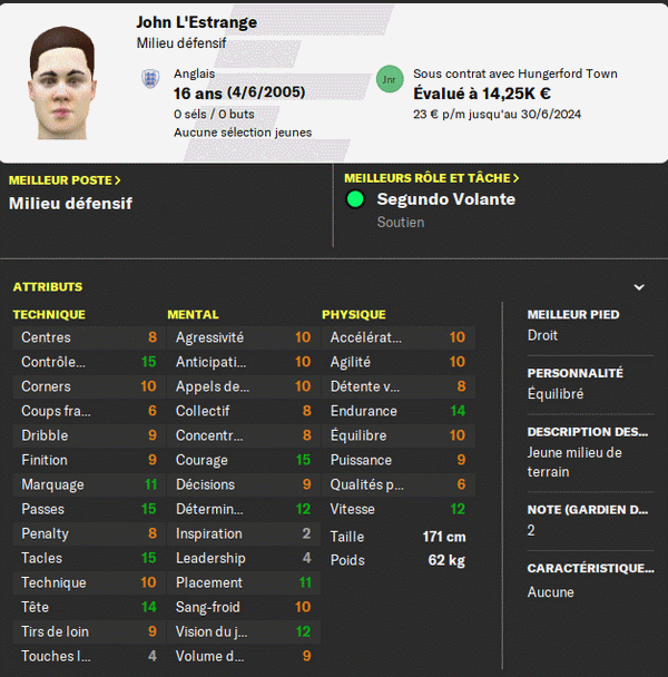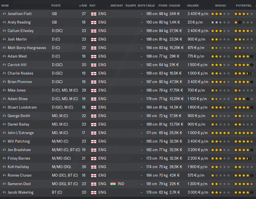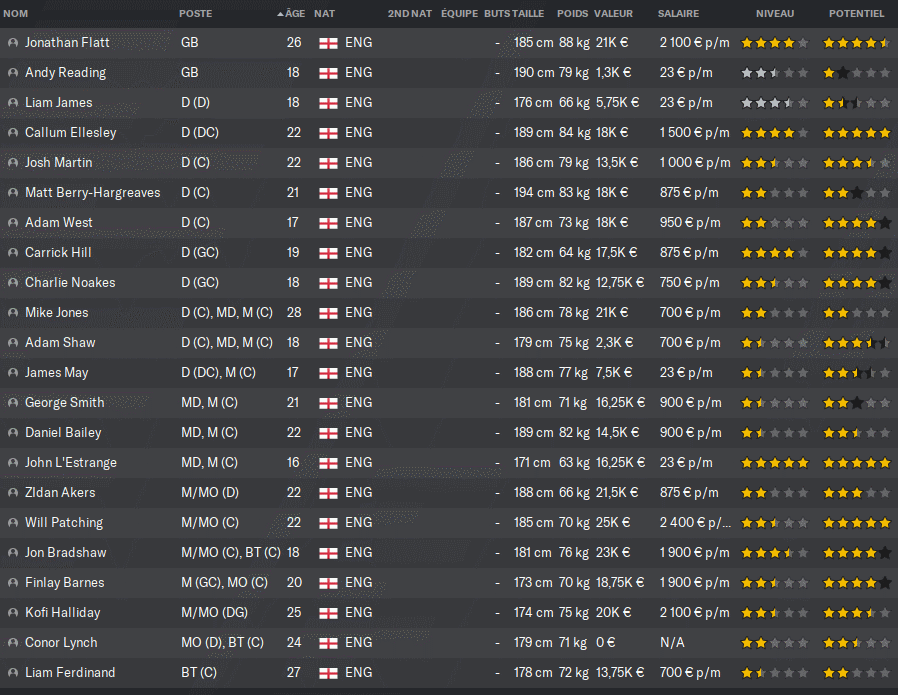 - 16 ans) : Prodige du milieu de terrain recruté à Boston Utd (D6) que nous avons convaincu de nous rejoindre. Nous sommes bien conscients que nous avons déniché une perle rare et que nous serons sollicités très rapidement par de plus grands clubs mais en attendant nous comptons bien profiter de son talent.