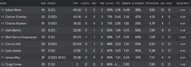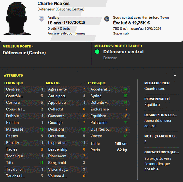 - 18 ans) : Jeune défenseur central solide dans les duels aériens, formé à Crystal Palace. Non utilisé par son club formateur, il a bien voulu nous rejoindre pour lancer sa carrière.