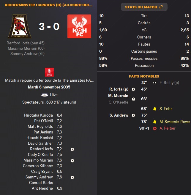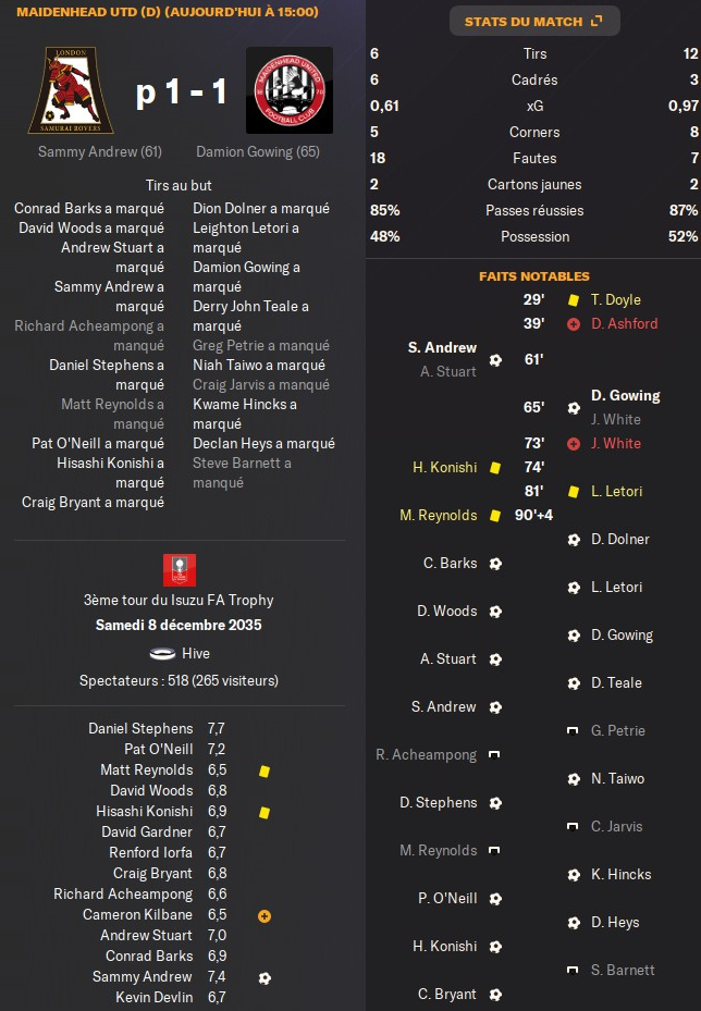 En Fa cup, il a fallu rejouer le match pour passer au 2eme tour !! OĂč nous jouerons Ă domicile face Ă Crawley Town !! (Ă©quipe de L1)