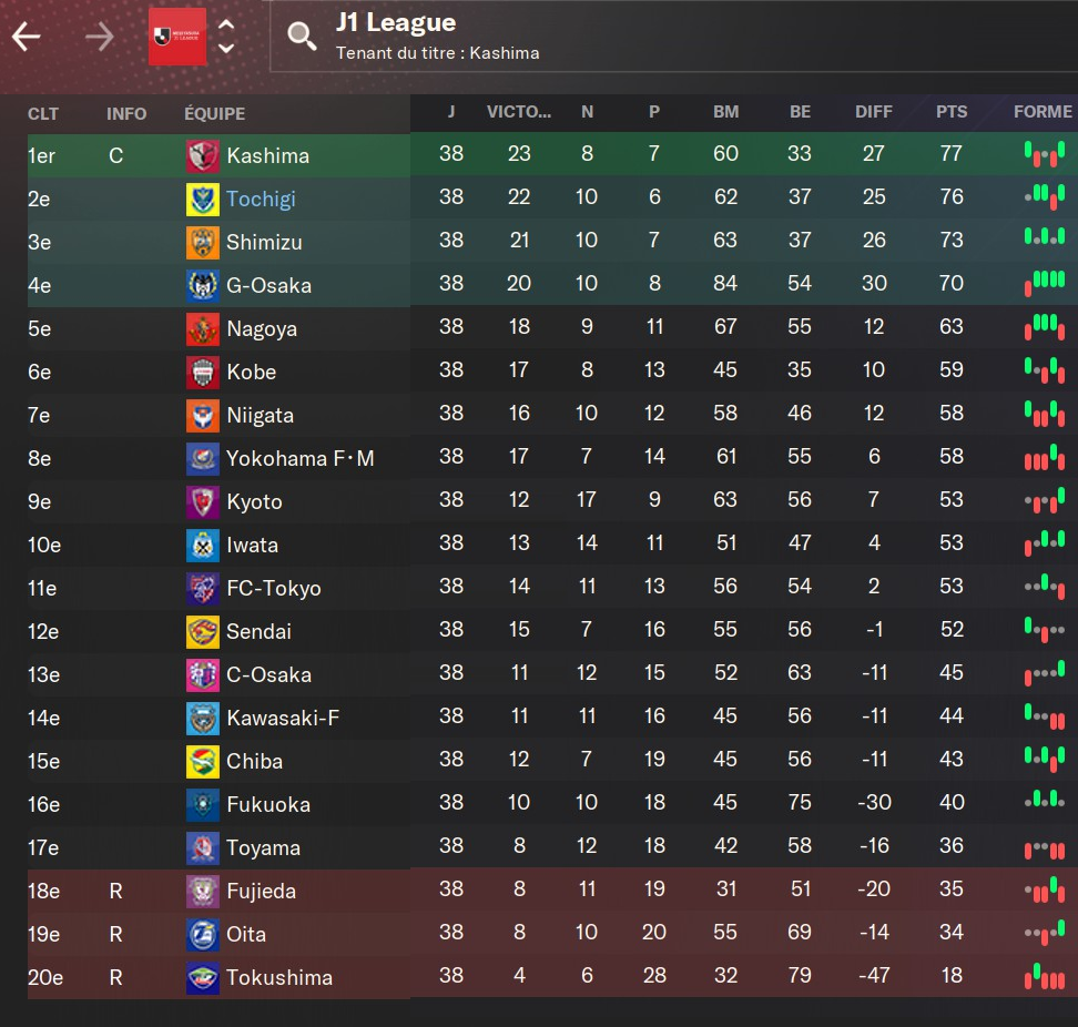Une belle fin de saison au Japon. Dommage de louper le titre ainsi mais câest de bon augure pour le prochain exercice