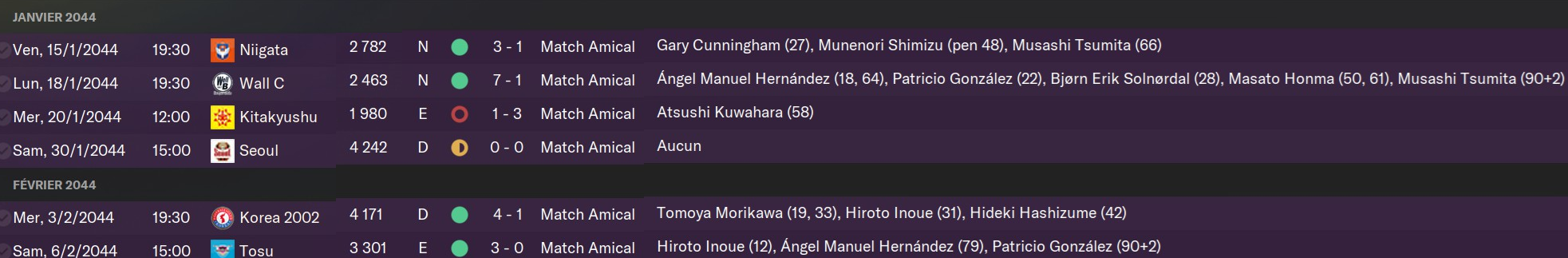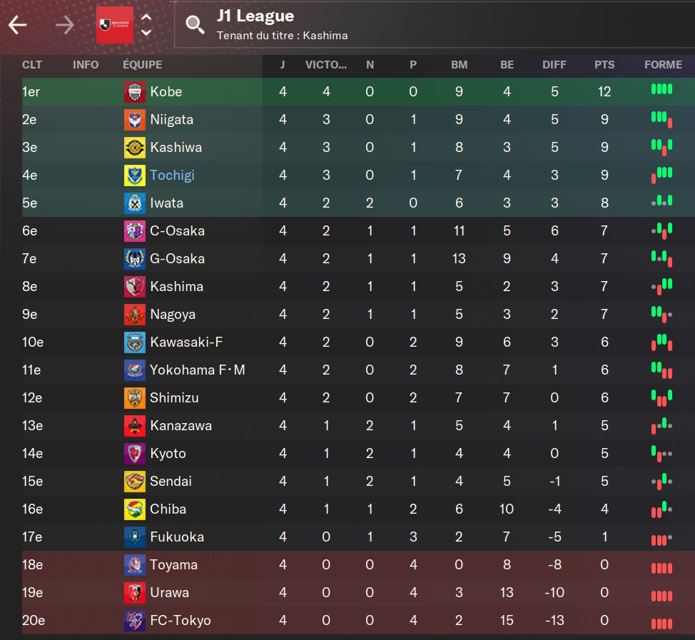 MalgrĂ© un mauvais depart face Ă Yokohama, la suite reprend vite du poil de la bĂȘte et aprĂšs 4 match nous sommes dans le haut du tableau