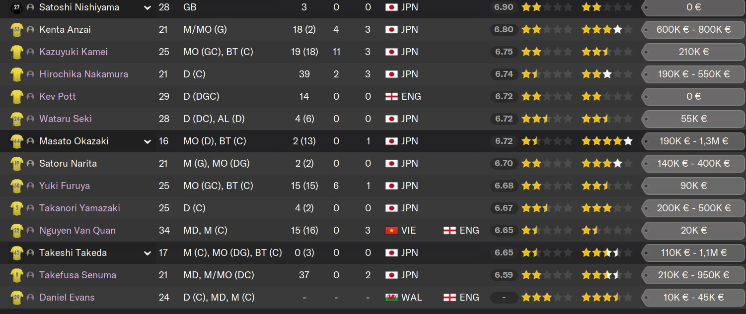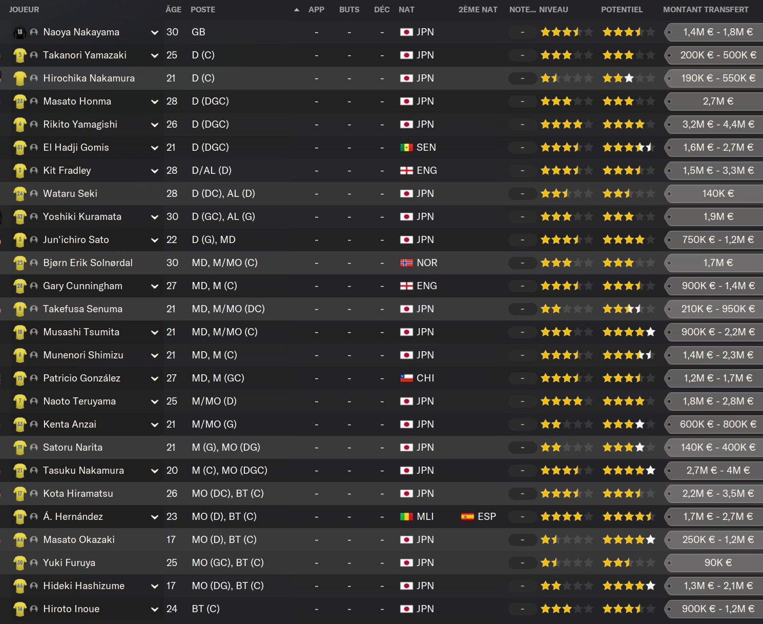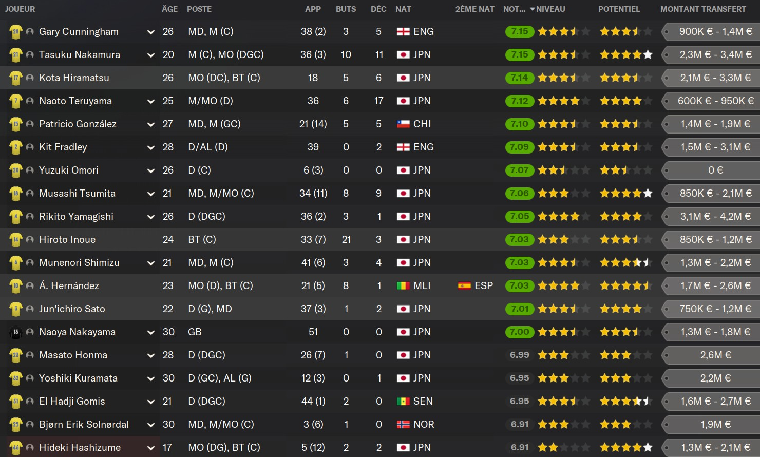 La valeur des joueurs nâest pas trĂšs haute pour la Japan League 1