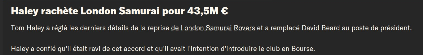 Lâachat du club est actĂ© et lâentrĂ©e en bourse gĂ©nĂšre quelques Millions dââŹ