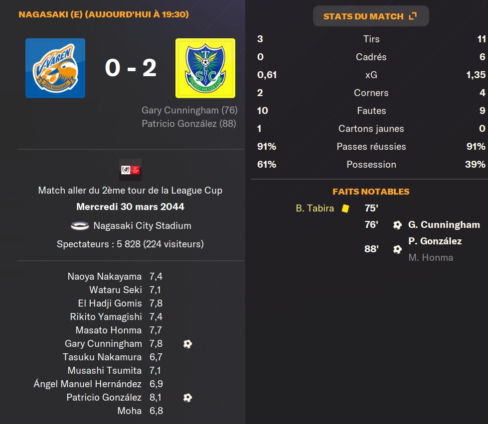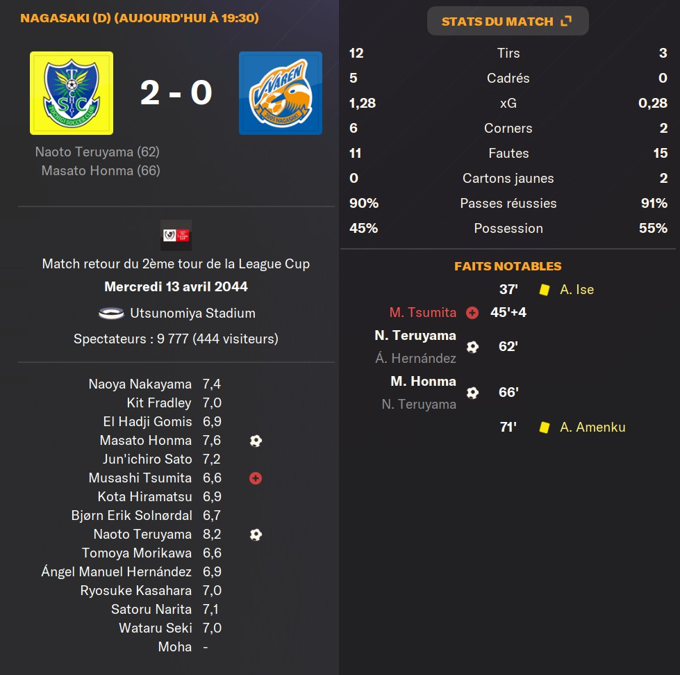 Alors quâen League Cup, on se dĂ©fait de Nagasaki sans aucun soucis