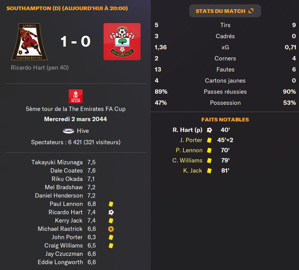 oui y a eu peu de tirs, mais gagner face Ă une Ă©quipe de Premier League , câest Ă©norme