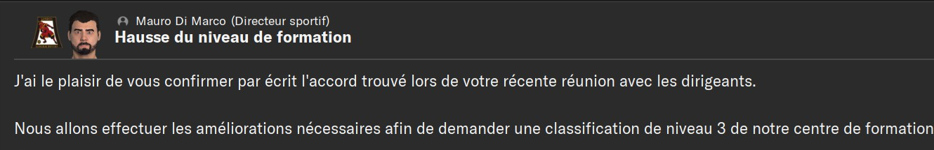 Le comité directeur est venu me trouver pour augmenter le niveau de formation
