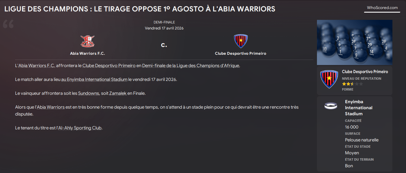 Pour rappel, nous sommes en quarts de finale, ou nous avons tiré Orlando Pirates