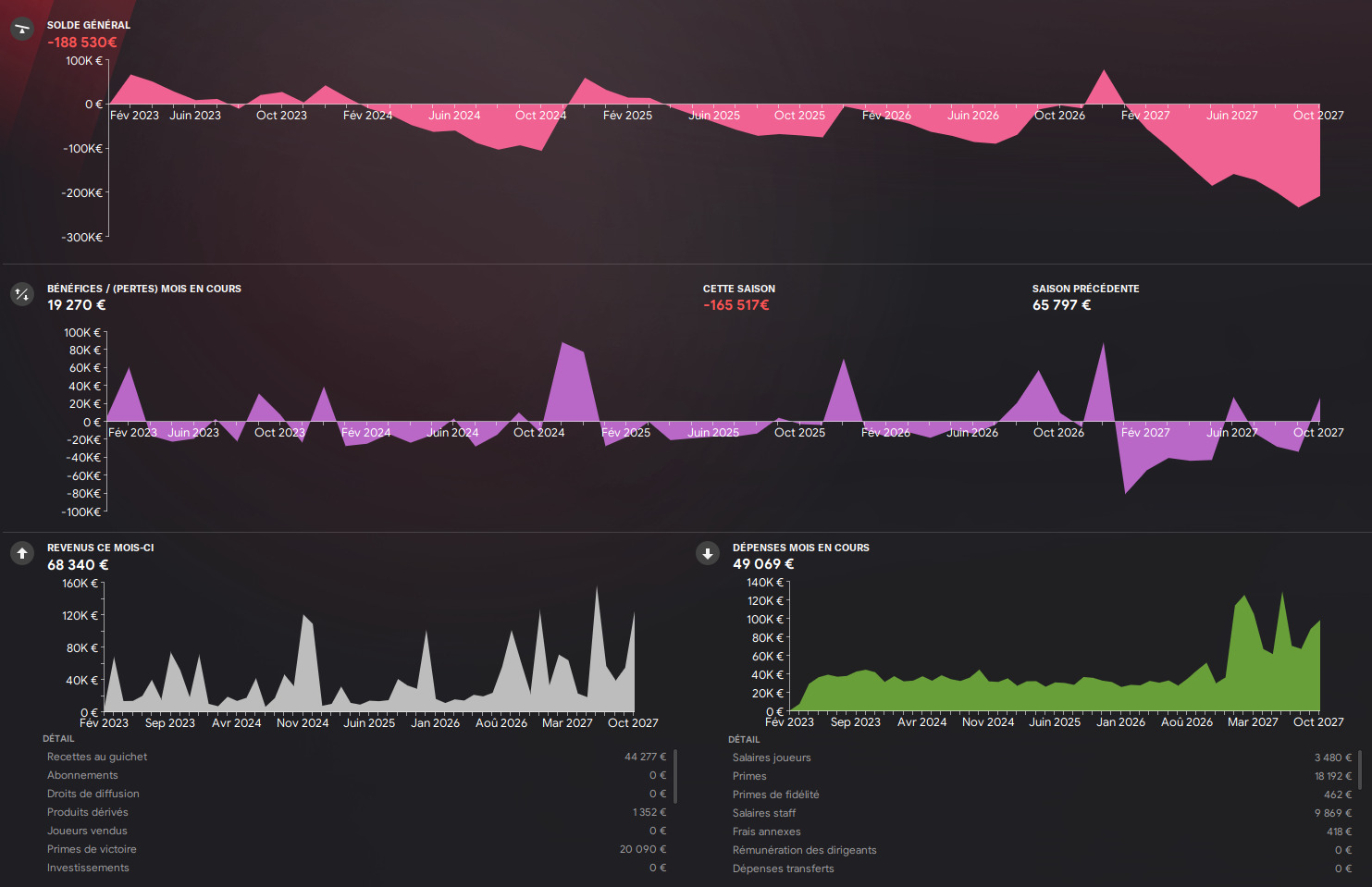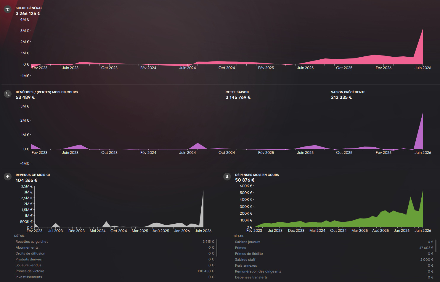 FinanciÚrement, vu le mercato on a sans surprise commencé à couler le club⊠Va falloir compter sur les primes de toutes les compétitions disputées.