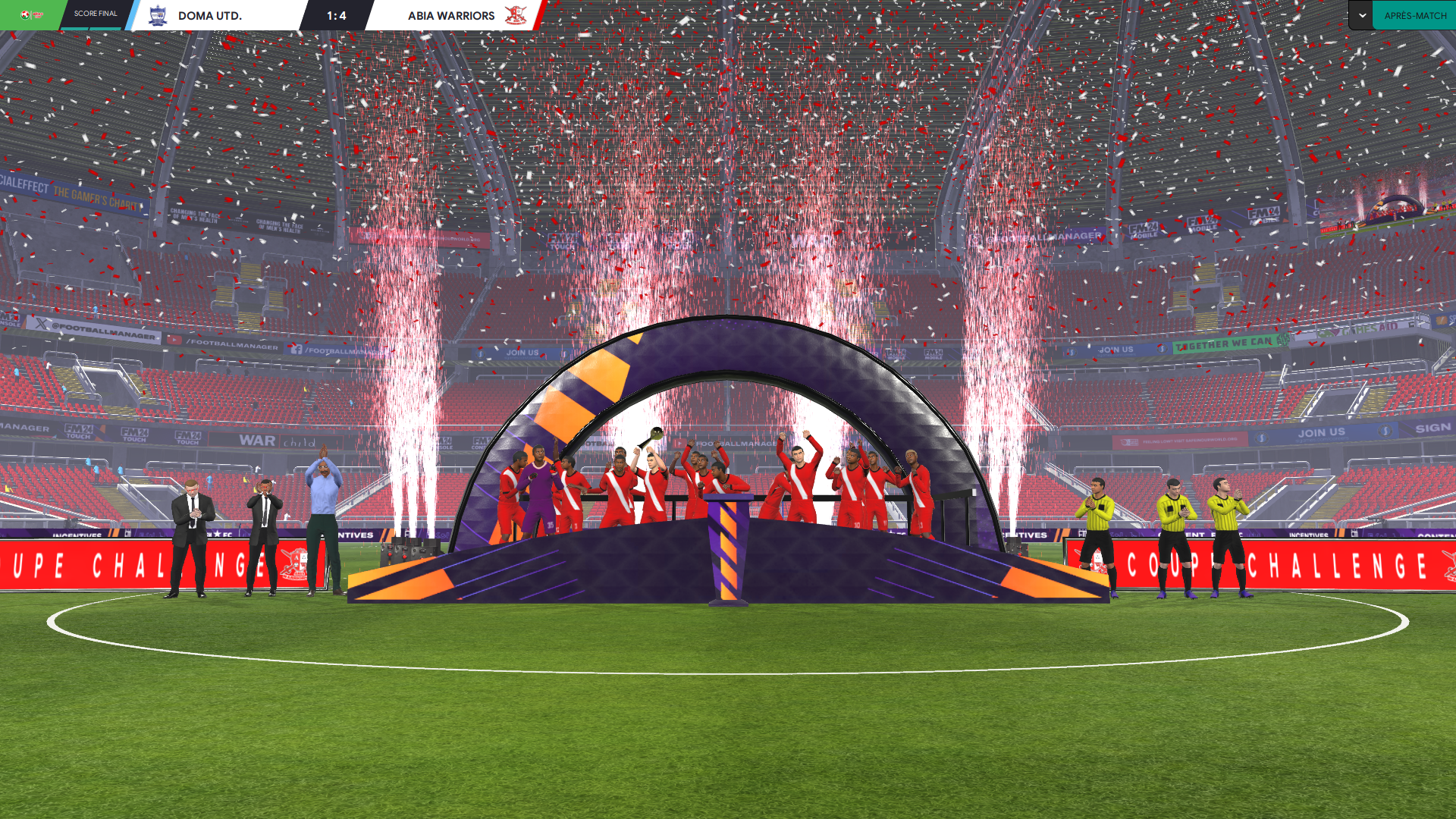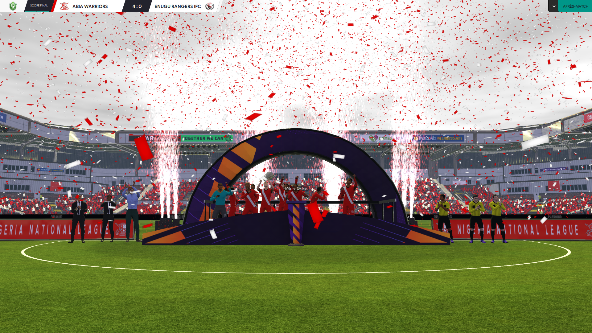 Okachi a inscrit son premier but depuis 11 heures TCC, mais pas des moindres ! On sâimpose par 2 buts inscrit sur corner, CPA Manager dans toute sa splendeur !