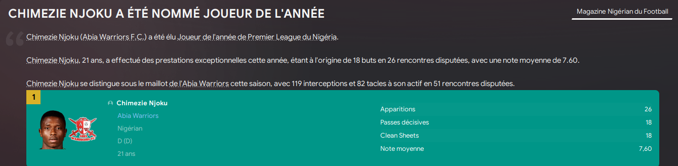 Notre profil Ă la fin de la saison :
