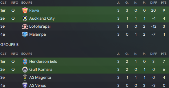 Pour commencer, les 6 nations les plus faibles du continent jouent un tour prĂ©liminaire ou le premier obtient une qualification pour la LDC OcĂ©anienne, nous nây sommes pas conviĂ©s.