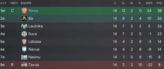 En New World National League des Fidjis, les 2 premiers se qualifient en LDC Océanienne et le dernier est relégué, on est pronostiqué 4Úme avant le mercato.
