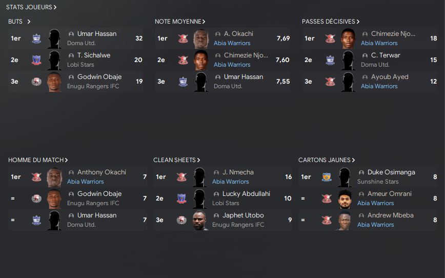Les stats de mes joueurs :