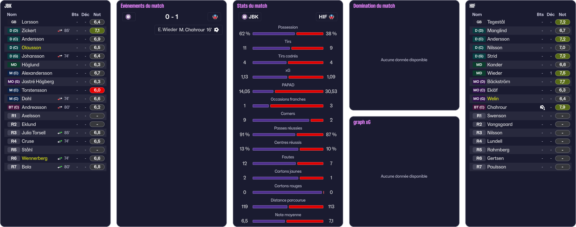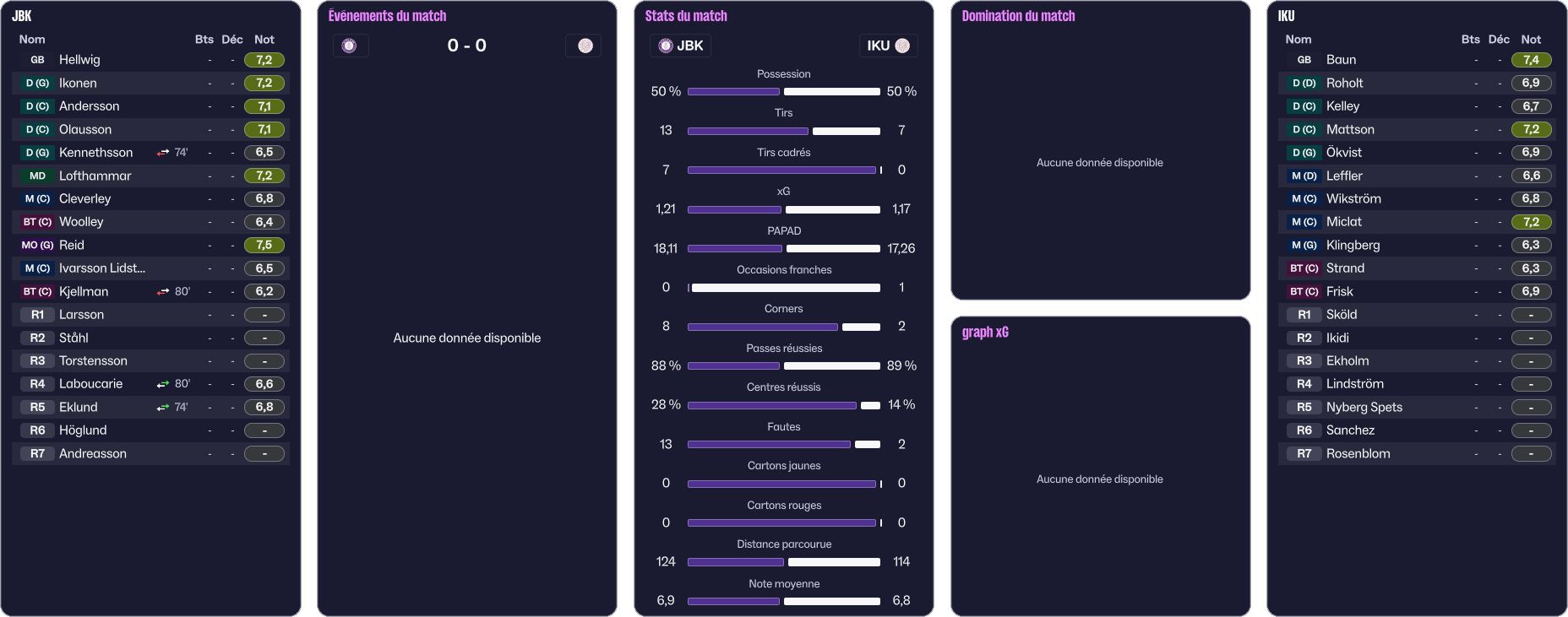 Une rencontre sans enjeu pour nous face Ă IK Uppsala qui lutte pour ne pas descendre. Jâassiste Ă un match dominĂ© assez largement par mes joueuses, mais dont le score reste Ă zĂ©ro.