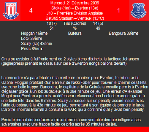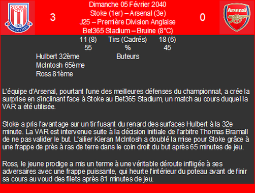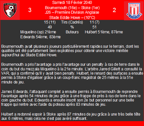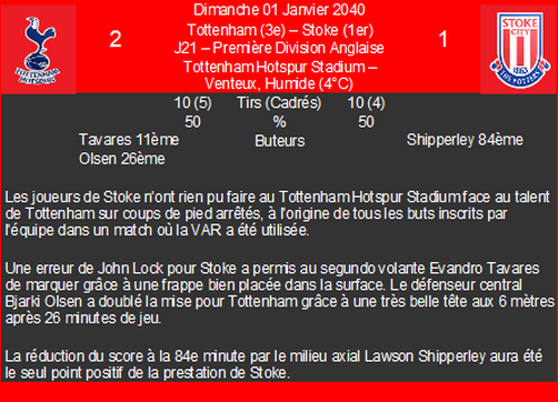 | 18/04/40 | e | premiĂšre division anglaise | |