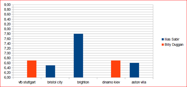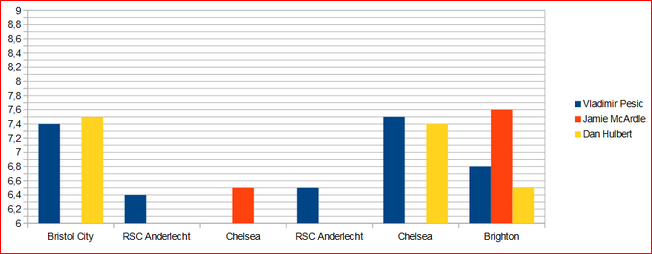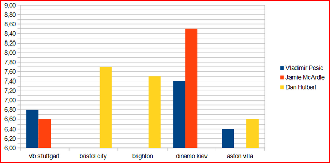 | ac | Vladimir pesic | 2(3) | 1 | 1 | - | - | 6.92 |