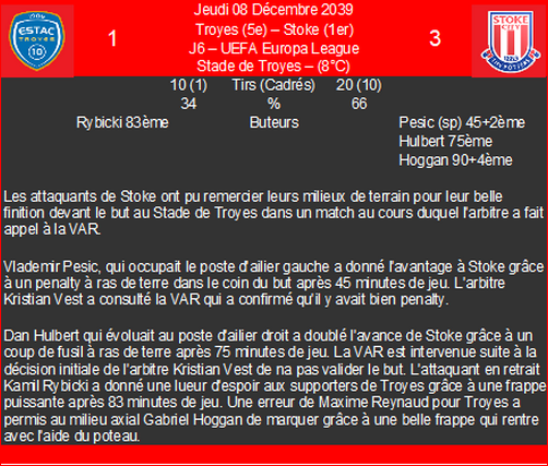 | 12/04/40 | d | 1/4 retour uefa europa league | |