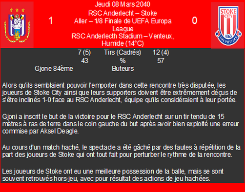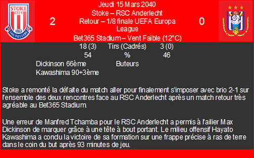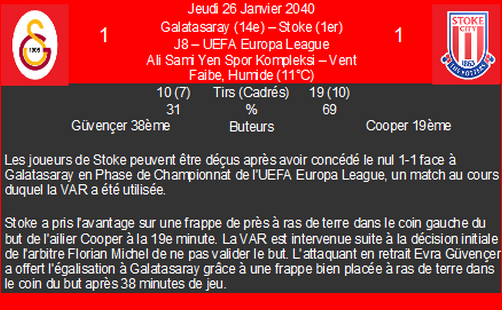 | 05/04/40 | e | 1/4 aller uefa europa league | |