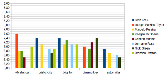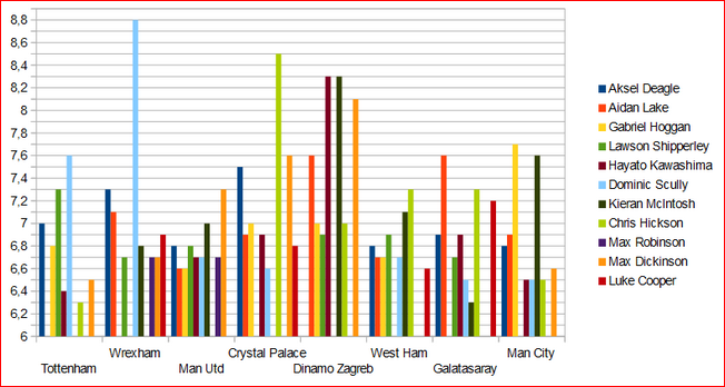 | dd | Cristion Macias | 3(1) | - | - | 1 | - | 6.83 |