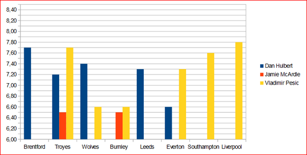 | ac | jamie mcardle | 1(1) | - | 1 | - | - | 7.05 |
