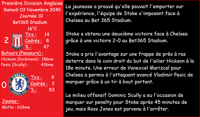 | 15/12/40 | e | premiĂšre division anglaise | |