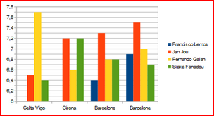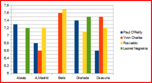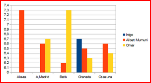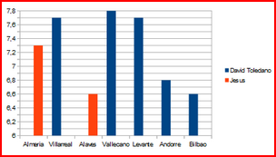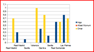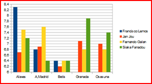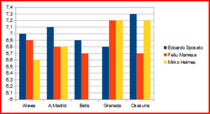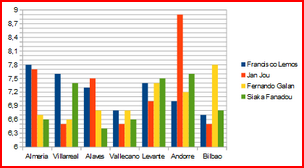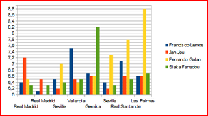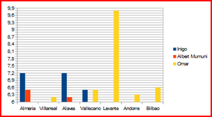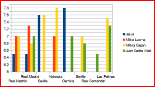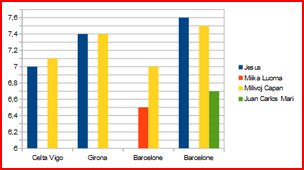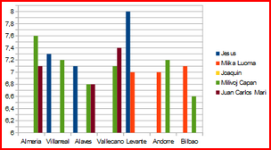 | Juan Carlos Mari | 0 | 1 | 0 | 0 | 0 | 0 | 6,70 |