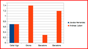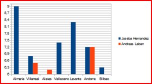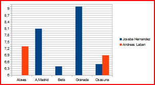 | Joseba Hernandez | 1 | 0 | 0 | 0 | 0 | 0 | 6,70 |