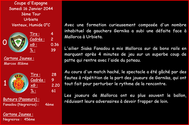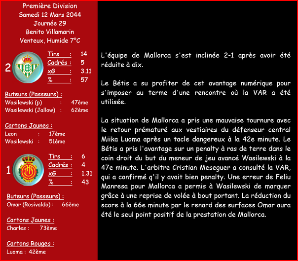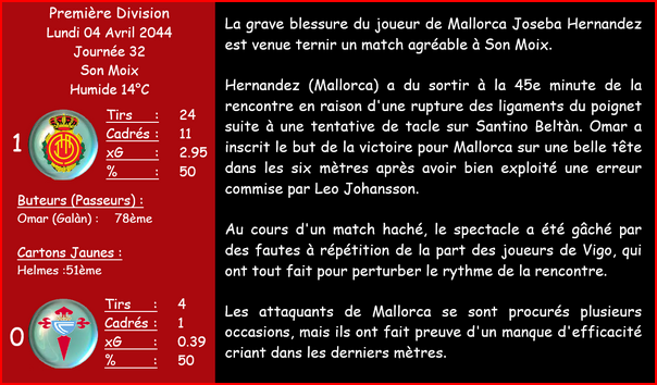| 04/04/44 | J.Hernandez | 5/6 semaines | Rupture des Ligaments du Poignet | Sur un Tacle Effectuer | En Match |