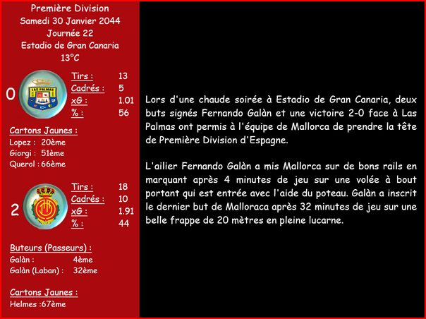 | 28/01/44 | NicolĂ s Morales | Sobradillo | PrĂȘt |