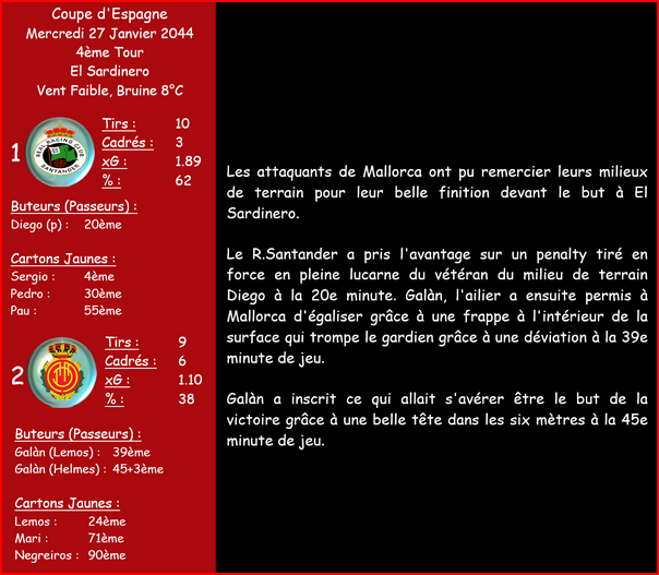 Carlos Lozano de Info Foot Burgos : Etant donnĂ© le trĂšs bon match de Mallorca face au R.Santander, vous devez espĂ©rer une prestation du mĂȘe niveau lors de cette rencontre.