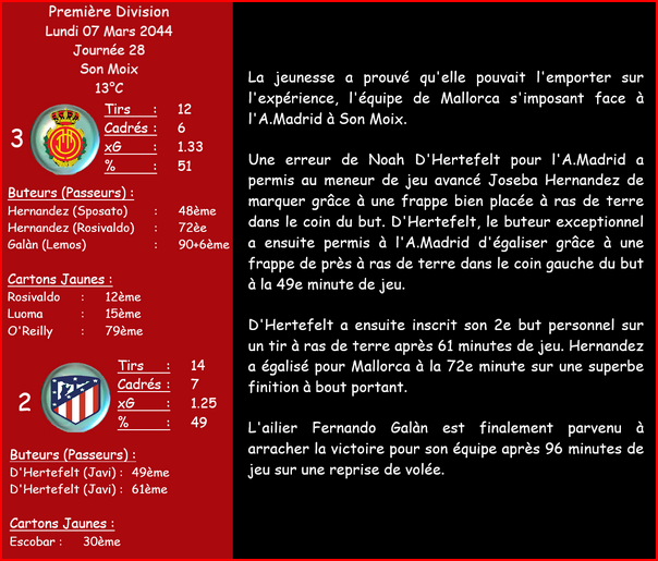 Câest un mois un peu plus compliquĂ© en terme de rĂ©sultat et le jeu pendant les matchs. On perd donc notre premiĂšre place mais on reste proche de la premiĂšre place Ă 1 pts.