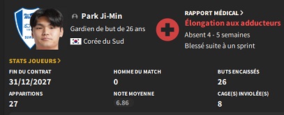 La deuxiĂšme recrue dâimportance est le vĂ©tĂ©ran Park Yoon-Woo, qui dĂ©barque de la J-League 1. En fin de contrat au FC Tokyo, il nous rejoint sans compensation. Il signe un contrat dâun an avec un salaire de â©800M annuel. Un salaire Ă©levĂ© mais il faut des joueurs expĂ©rimentĂ©s pour encadrer les jeunes.