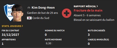 Il fera une excellente doublure vu le dĂ©part Ă la retraite de Lee Ki-Je. En cas de bonnes prestations, nous pourrions mĂȘme activer la cause dâachat.