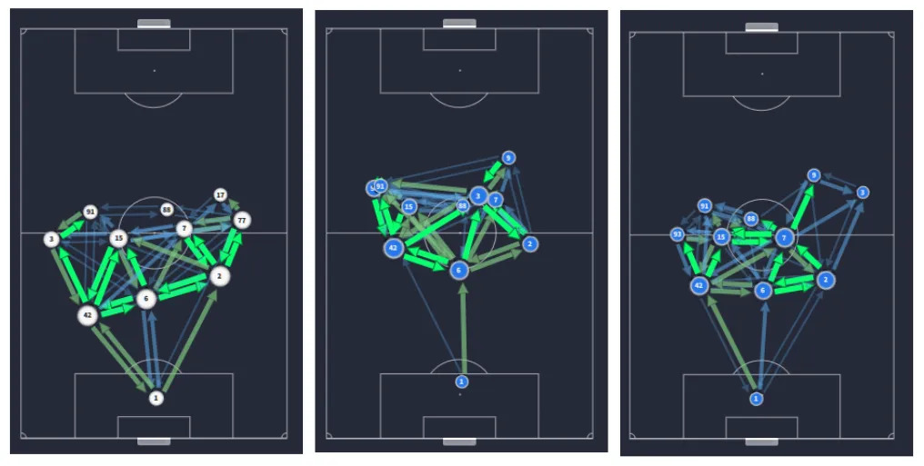 Bien que le déploiement de trois défenseurs centraux puisse sembler défensif, dans le système de Gasperini, il sert un objectif progressif. Il libère les arrières latéraux pour qu’ils puissent monter vers l’avant, tout en permettant à un défenseur central de se positionner au milieu de terrain ou de participer à l’attaque lorsque l’équipe est en possession du ballon. Cette flexibilité tactique permet à l’Atalanta d’exploiter la largeur du terrain et de surcharger les zones clés pendant les phases offensives.
