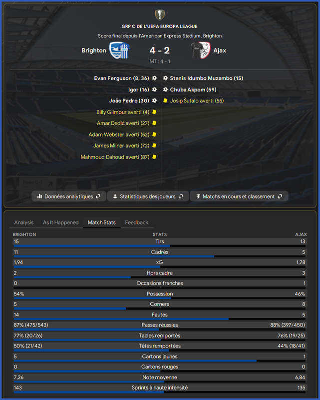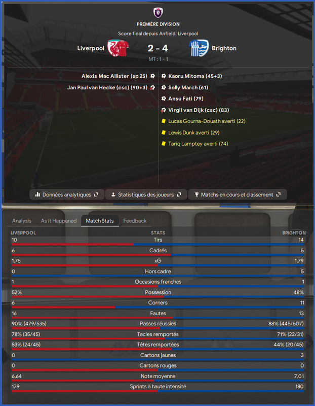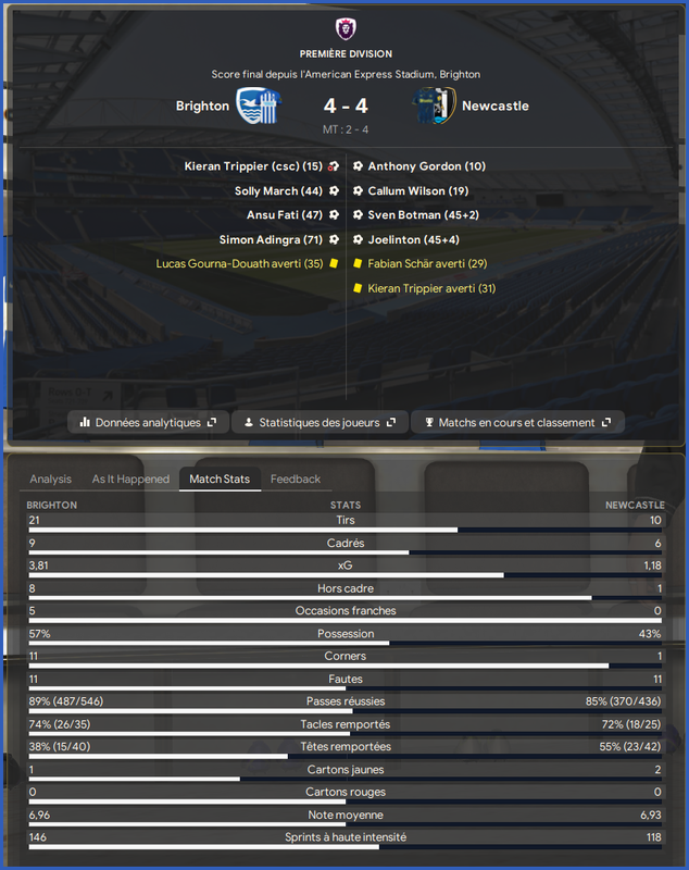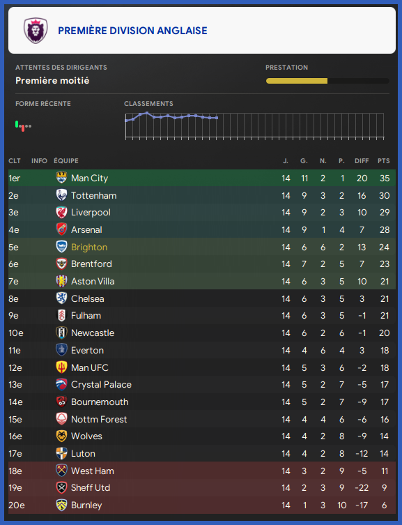 Un mois de janvier tout aussi bien, car avec lâarrivĂ©e des nouveaux joueurs, on reste rĂ©gulier. On gagne contre Arsenal, ça montre notre potentiel. On va perdre Ă Brentford câest dommage, mais logique parce quâen Carabao Cup, on fait un nul sur notre premier match contre Man City, donc jâai voulu jouer le coup Ă fond, donc faire tourner, en championnats, mais ça nâa pas payĂ©, car une petite dĂ©faite au retour qui nous sort de lĂ compĂ©tions, mais on aura bien figurĂ©.