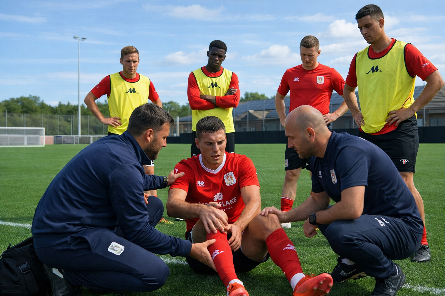 Une réception de saut toute simple, presque insignifiante dans le flot de l’exercice. Mais son genou avait tourné, juste assez pour que quelque chose cède. Le groupe s’est figé. Même le ballon semblait s’être arrêté. Je me suis approché, déjà avec cette sensation de froid dans le ventre, celle qu’on connaît trop bien quand on a passé un peu de temps sur les terrains.