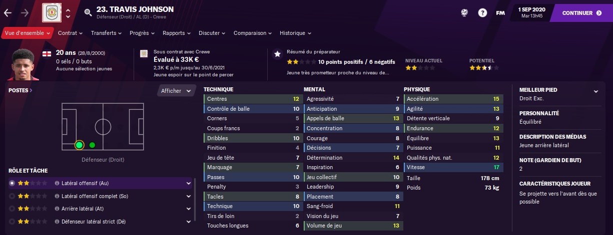 En parlant de ce dernier, ce nâest pas le plus fin des techniciens, mais il dispose de belles qualitĂ©s mentales, et surtout physiques avec une vitesse et une accĂ©lĂ©ration qui, Ă elles seules, devraient nous permettre de bĂ©nĂ©ficier de situations intĂ©ressantes.