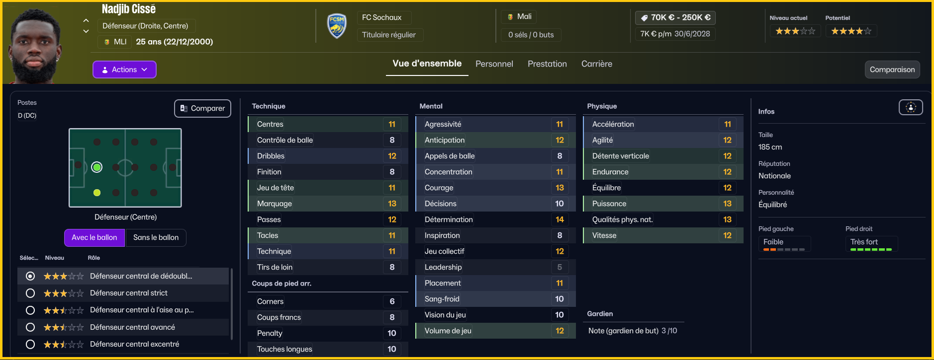 Au niveau du recrutement, je ne me fixe qu’une seule règle. C’est de ne recruter uniquement les joueurs recommandés par ma cellule de recrutement ou transfert room. (Guide recruter uniquement avec la cellule de recrutement.) Bien sûr, le centre de formation aura un rôle à jouer, mais mon équipe réserve n’a pas de championnat. C’est loin d’être pratique de devoir leur organiser des matchs amicaux en permanence …