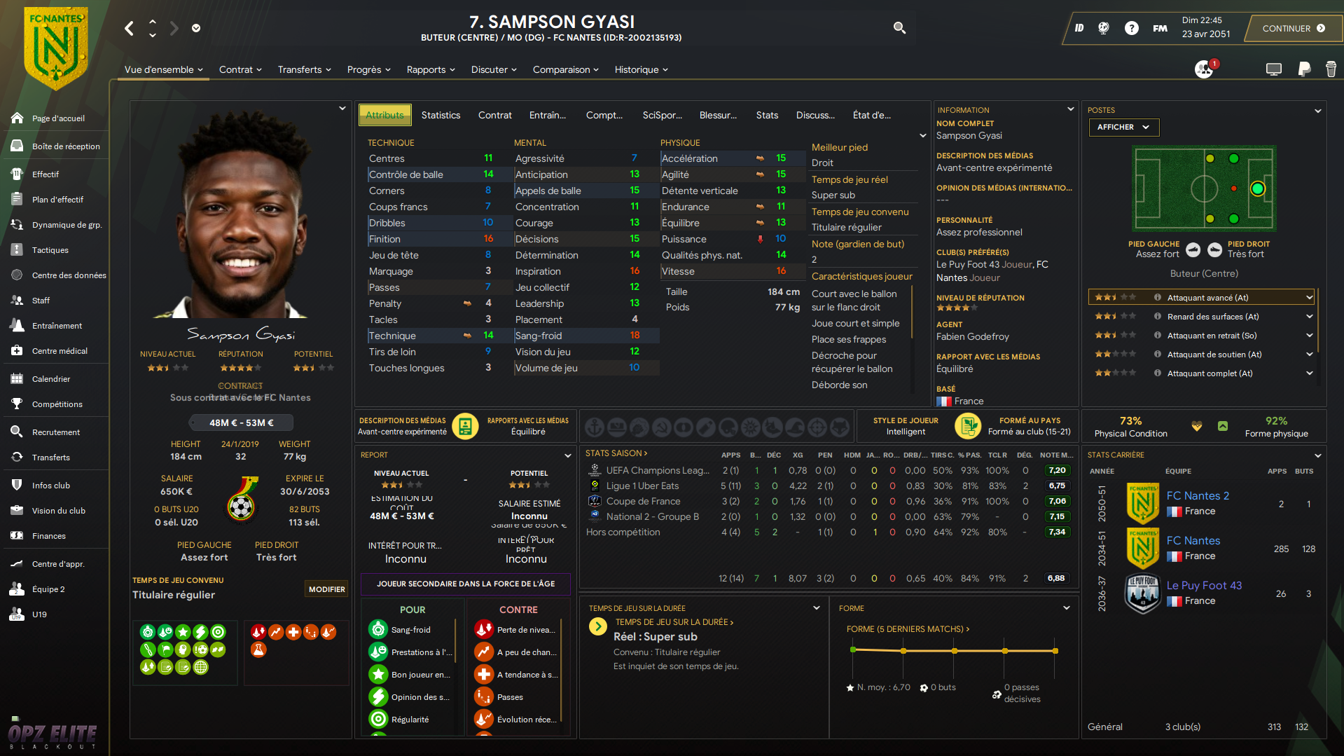 Si je vous parle de lui, câest parce que lors de ce match, il a fait ce quâil sait faire le mieux : briller et rassurer ses troupes. AprĂšs avoir menĂ© un rude combat durant 90 minutes face Ă la dĂ©fense parisienne, lâattaquant trentenaire est parvenu Ă arrĂȘter le temps. Dâun geste sublime, dont lui seul a le secret. A ce moment, le score Ă©tait de 2-1 Ă notre avantage, et la logique aurait Ă©tĂ© de dĂ©fendre cet avantage, pour assurer les 3 points. Mais pour lui, il en Ă©tait autrement. Il voulait marquer le match de son empreinte. Que son nom figure sur la feuille de match, et pas uniquement en tant que titulaire. Alors, câest Ă la 95Ăšme minute quâil a dĂ©cidĂ© de briller. Sur un centre de AYONGO venu de derriĂšre lui, GYASI a dĂ©clenchĂ© une reprise de volĂ©e qui est venu se loger sous la barre transversale au premier poteau et a fait se lever tous les supporters nantais qui avaient fait le dĂ©placement. TrĂšs certainement lâun des buts de lâannĂ©e. Mais ce qui mâa le plus ravi, câest sa cĂ©lĂ©bration. En premier lieu, il est venu se jeter dans mes bras. « Merci de votre confiance Coach, merci Ă©normĂ©ment. » me souffla-t-il Ă lâoreille. Avant de pointer un doigt en direction de la tribune au-dessus de nos tĂȘtes et dâadresser un cĆur Ă une personne visĂ©e, et de taper lâĂ©cusson du club sur sa poitrine. Je tournai la tĂȘte et vit @Coach_Arribas qui sâĂ©tait levĂ© pour applaudir, un large sourire aux lĂšvres.