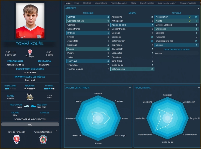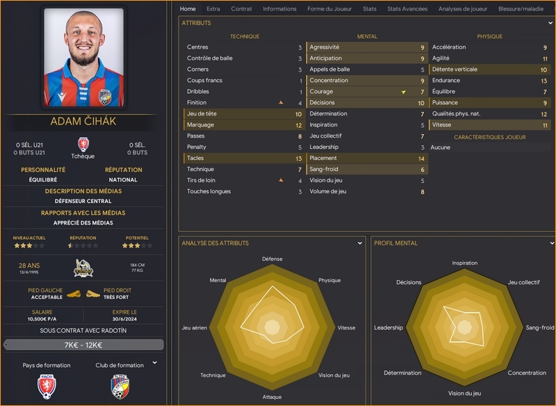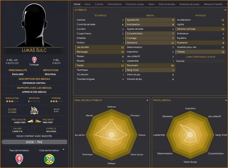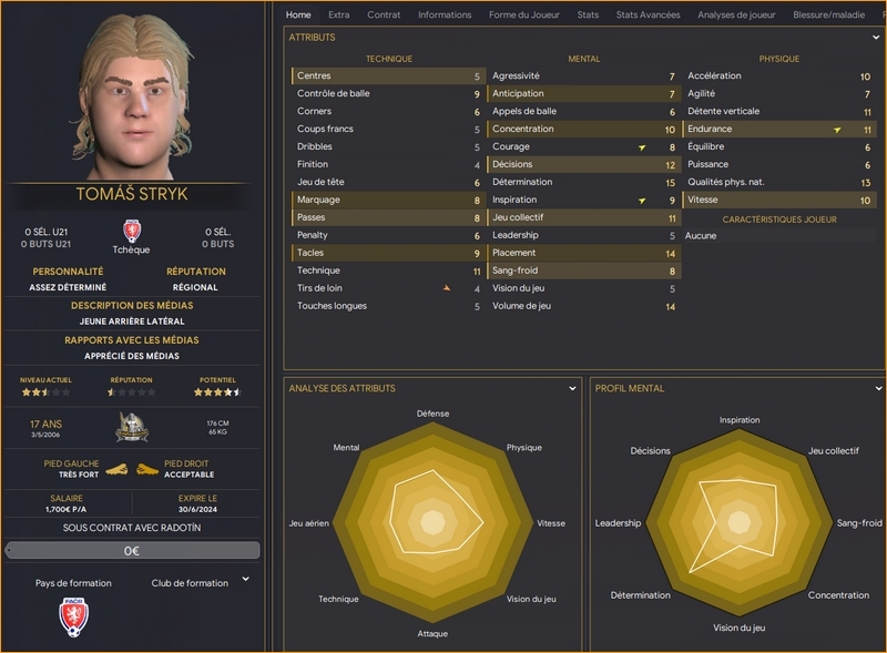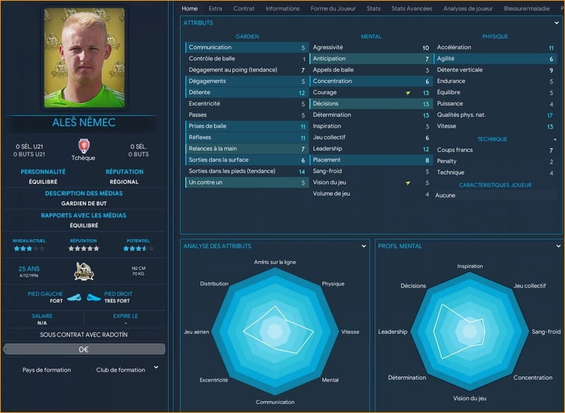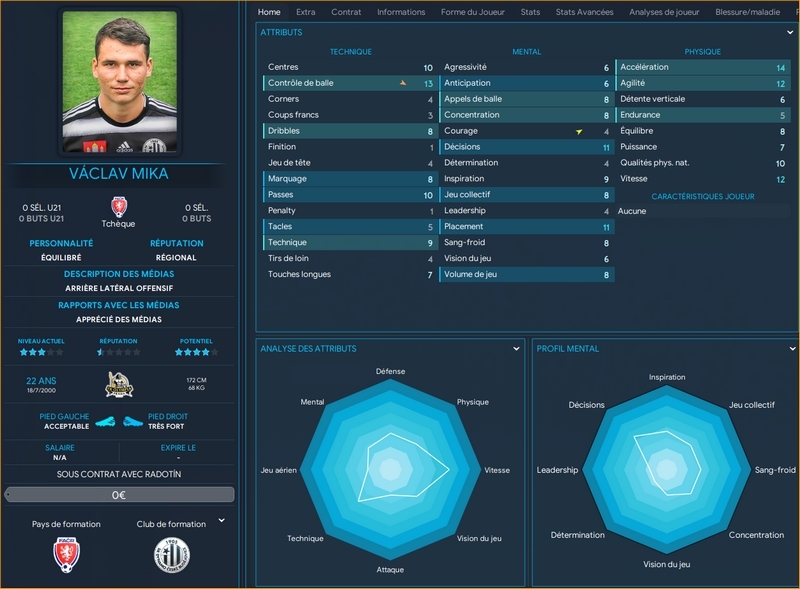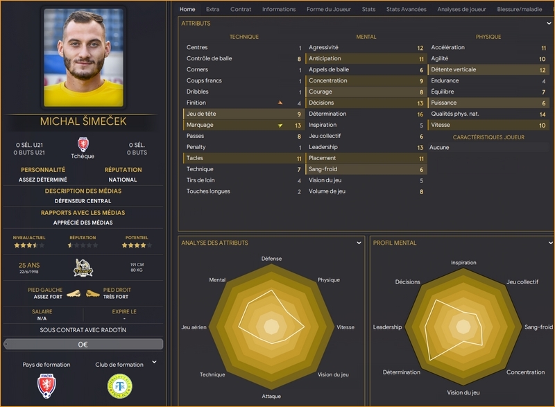 Second joueur à arrivé au club et formé par le Sparta, Lehocky arrive un peu tardivement. N’ayant qu’une solution au club au poste de MOD avec Kouril, j’étais obligé de former des joueurs latéraux gauche ou ailier gauche à ce poste. Mais, Lehocky semble posséder des capacités fort intéressantes et il signe au club pour prendre la place de titulaire.