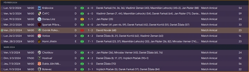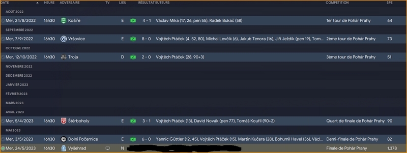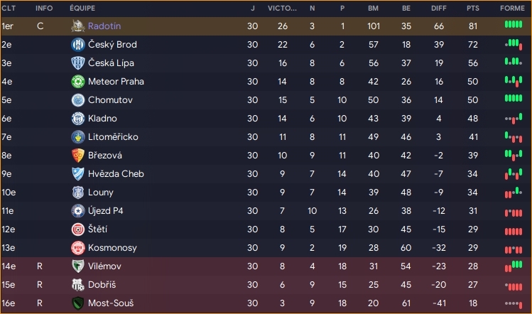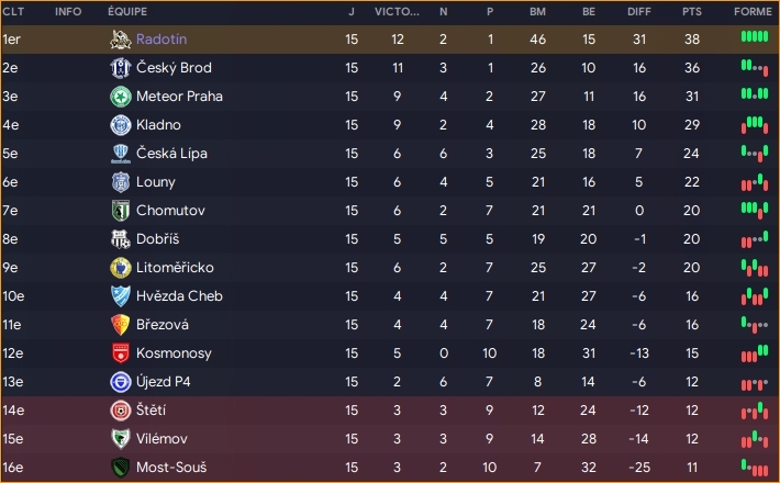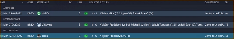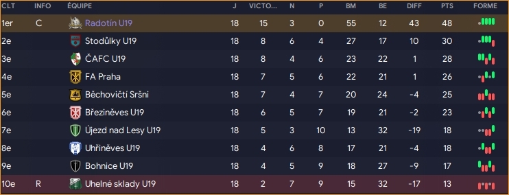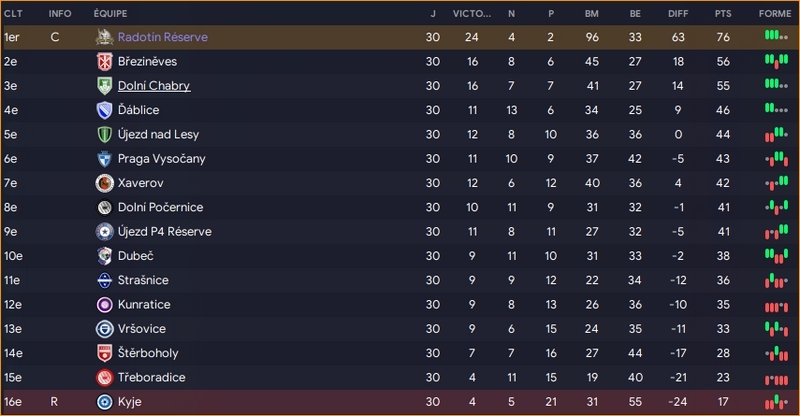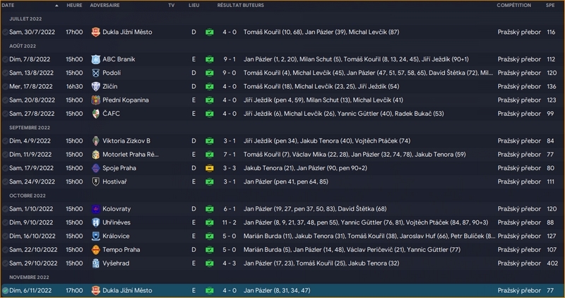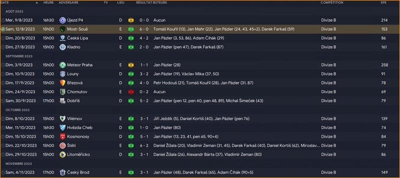 On avait plutôt mal commencé avec ce match nul en ouverture contre Ujezd P4, mais on se rattrape assez bien derrière. Néanmoins, on domine largement moins que la saison dernière et on encaisse même notre première défaite en championnat contre Chomutov. Derrière, on se rattrape assez bien notamment avec cette vitoire contre Cesky Brod.
