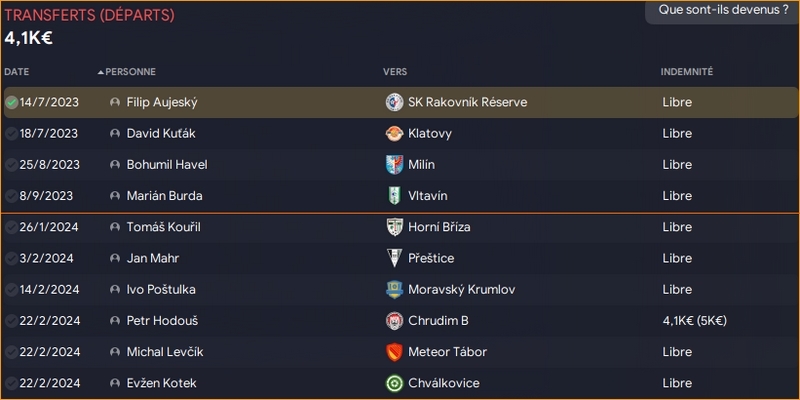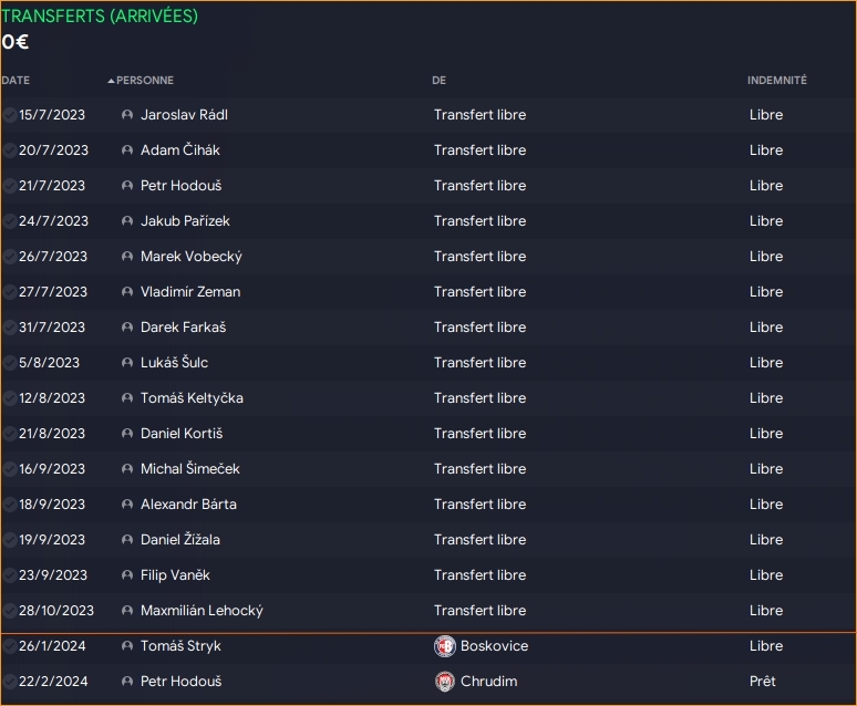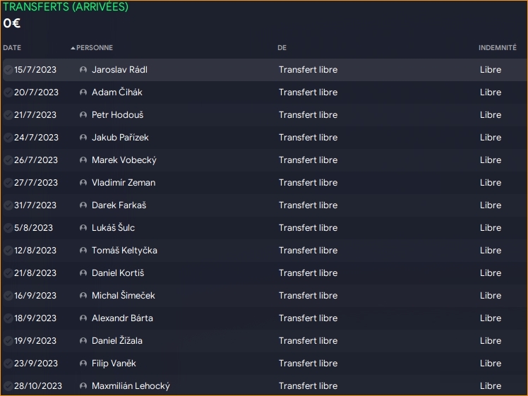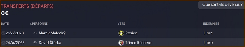 Le premier départ marquant est celui de Stetka, notre arrière gauche titulaire. Il a préféré rejoindre l’équipe réserve de Trinec mais a signé un contrat jusqu’en décembre 2023 avec une prolongation d’une saison en option. On reste à l’affût pour le récupérer.