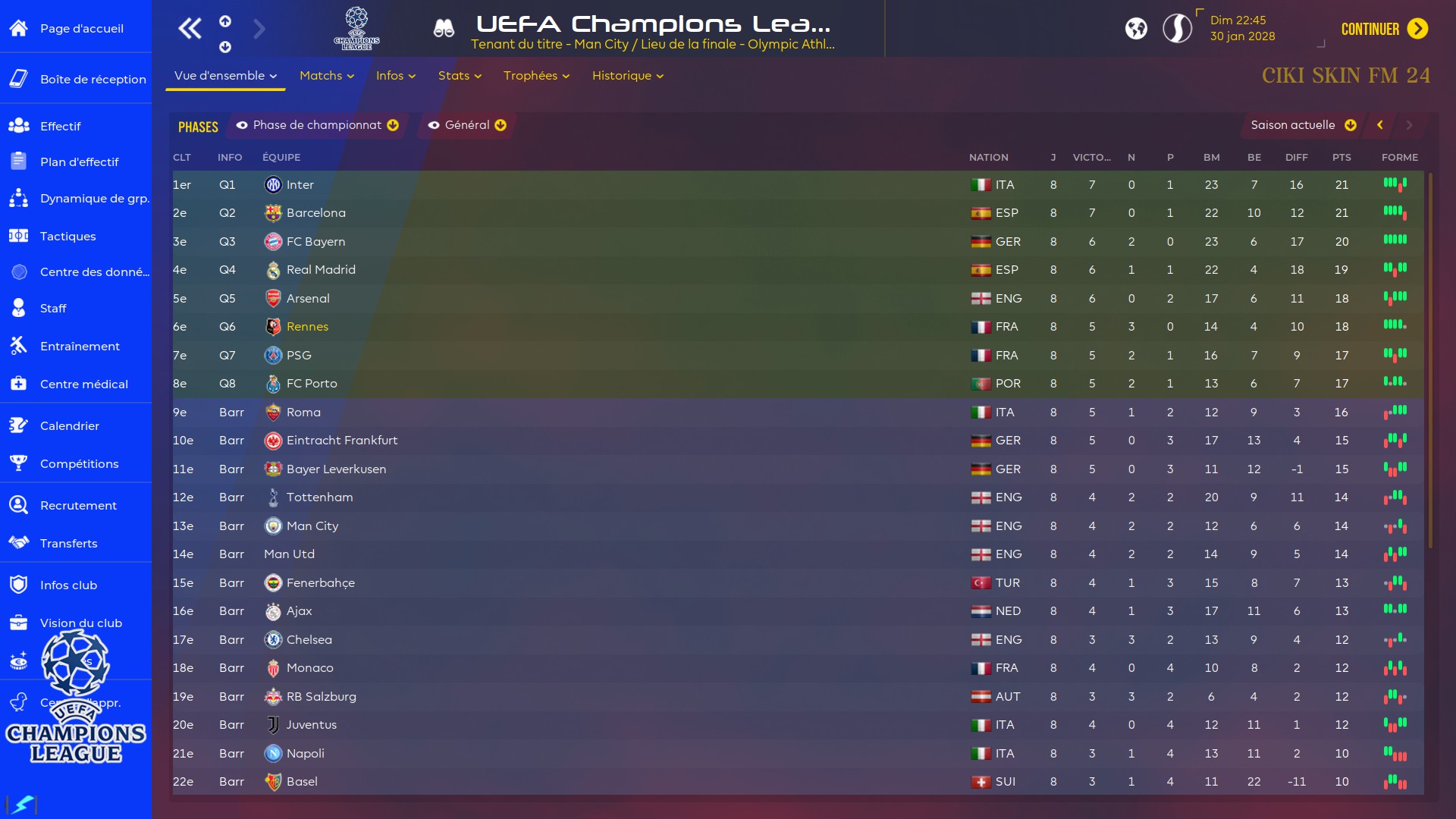 Et câest trĂšs bon pour la Ligue des Champions, avec une superbe remontĂ©e dans le top 8 ![]()