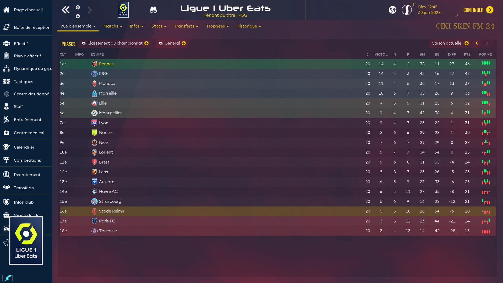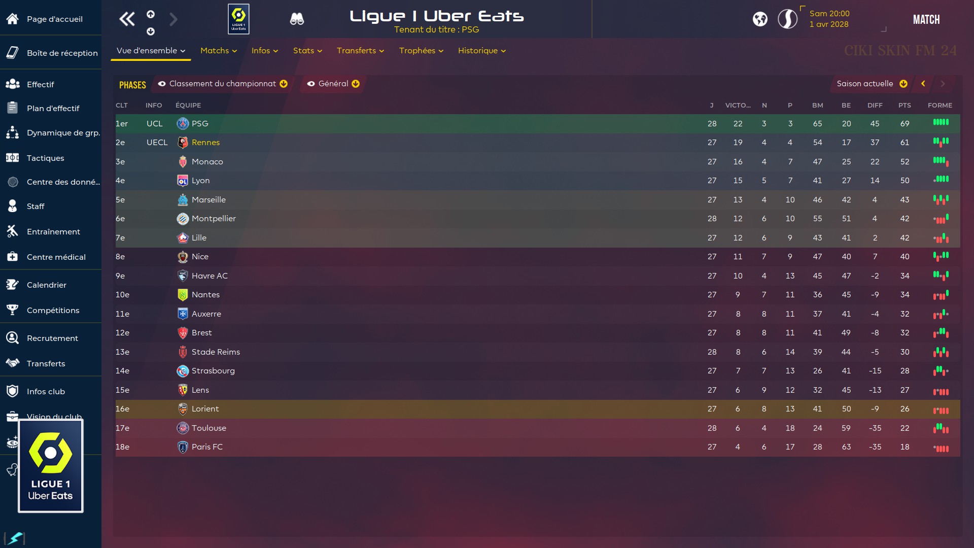 Encore un excellent enchainement pour terminer lâannĂ©e civile en beautĂ©. Seulement une belle dĂ©faite contre le PSG, mais ton Ă©quipe conserve une courte avance au classement.