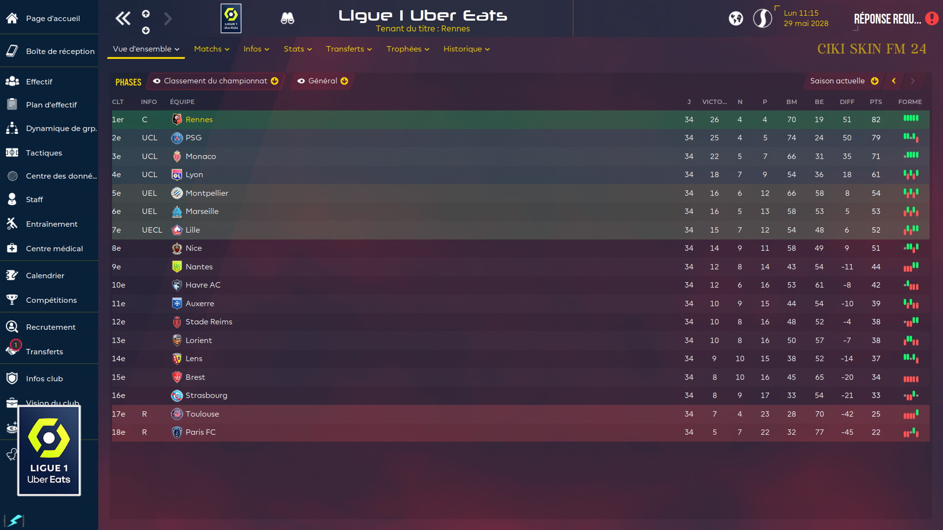| 06/05/2029 | Roazhon Park | 1-0 | CSC Daniel Mancini (17e) | |||