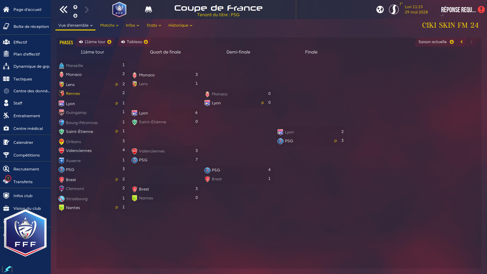 | 13/05/2029 | Roazhon Park | 2-0 | Désiré Doué (62e), Ayyoub Bouaddi (86e) |