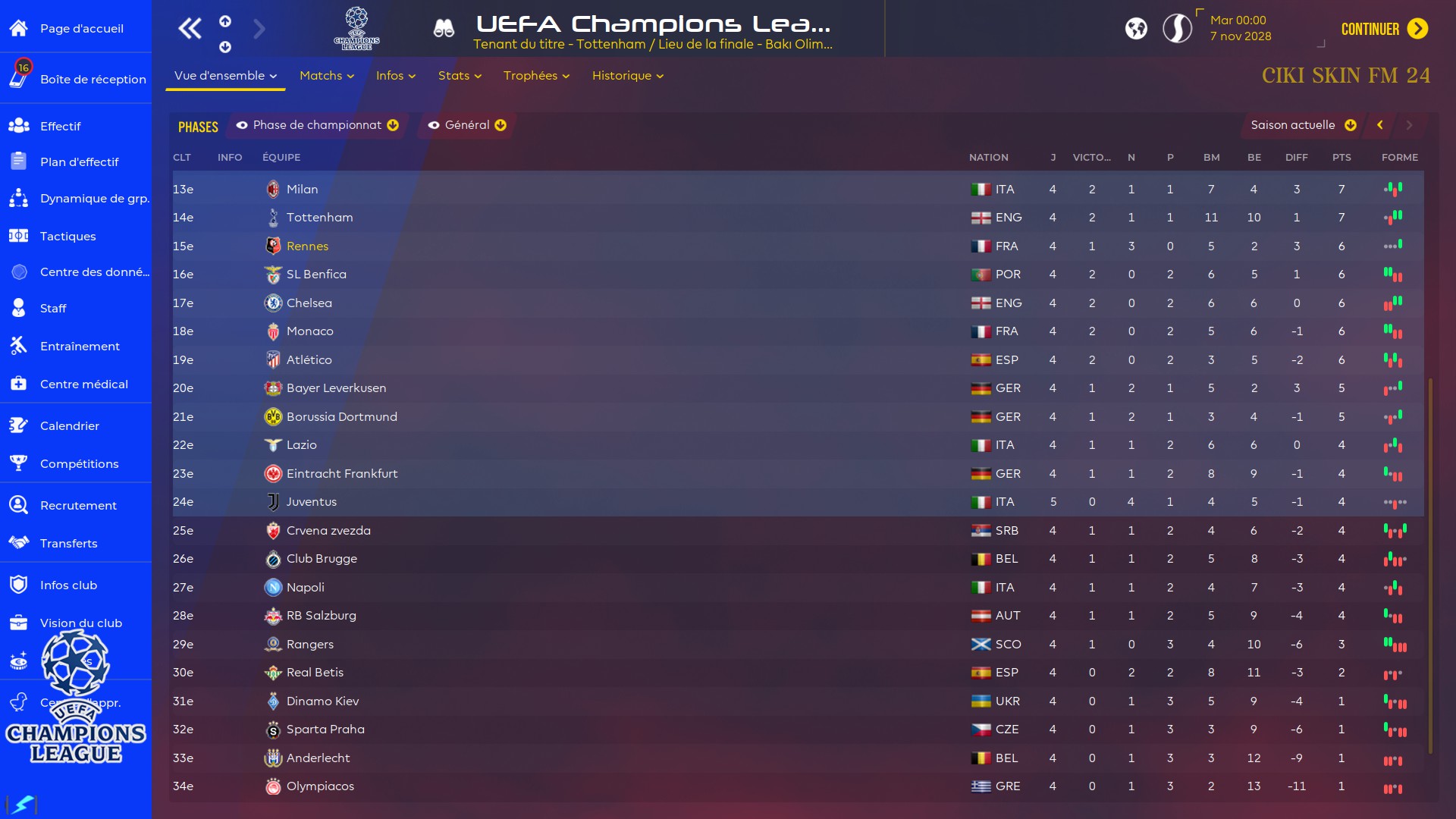 Beaucoup de matchs nuls en LDC⊠Va falloir gagner bcp plus si on veut accrocher le top 8 ! Mais il reste encore 4 journées, ça peut largement passer.