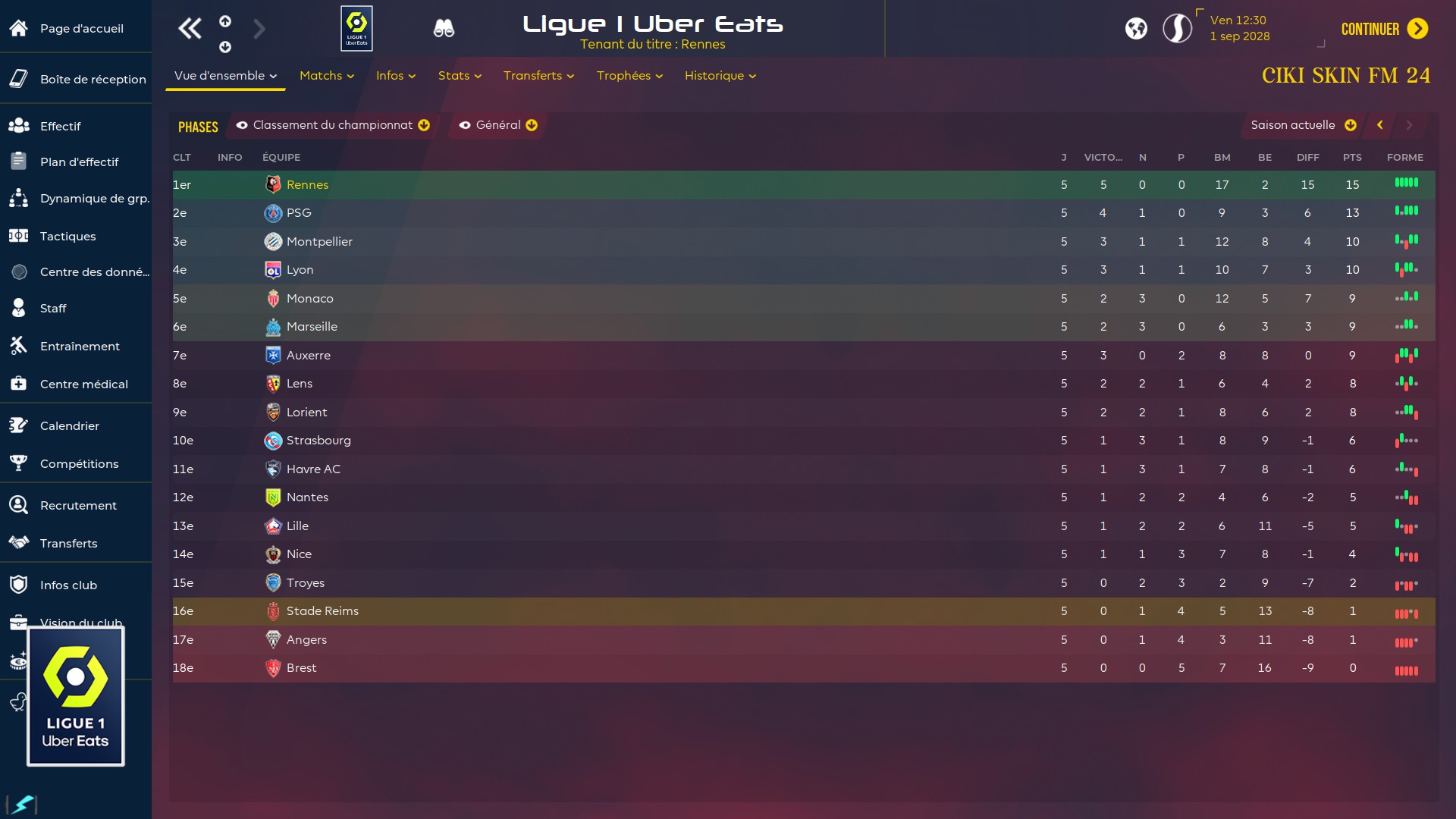 Le calendrier du Stade Rennais en Ligue des Champions 2029/2030 est connu :